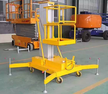 鋁合金液壓升降機(jī)且耗電少、無污染、工作時(shí)不傷地面,可用于貼墻工作及探出作業(yè),工作無死角。鋁合金液壓升降機(jī)廣泛適用于星級(jí)酒店,大型超市等各行業(yè)大廳、廠房內(nèi)的高空清潔和電線、照明安裝維護(hù)類高空作業(yè),鋁合金液壓升降機(jī)根據(jù)其自身升高度可分為:單桅柱式升降機(jī)(4-10米),雙桅柱式升降機(jī)(8-14米)跟多桅柱式升降機(jī)(12-22米)。